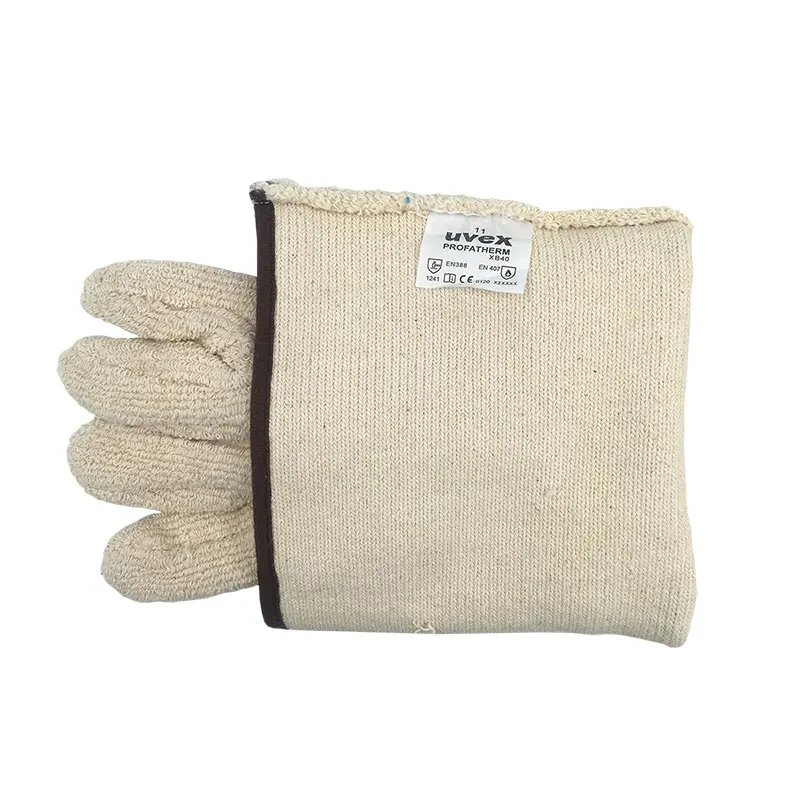 دستکش ایمنی حولهای یووکس مدل Profatherm XB40 یکی از برترین محصولات حرارتی برند معتبر UVEX آلمان است که برای محافظت دستان در برابر حرارت شدید، شعله، جرقه و تماس با سطوح داغ طراحی شده است.