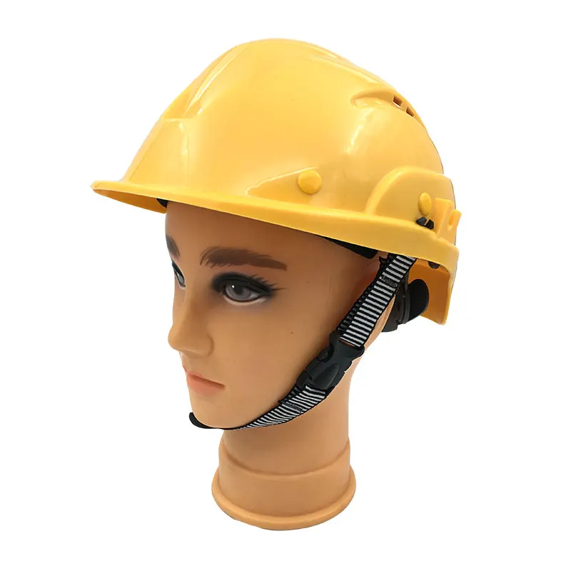 کلاه دارای بند چانه ایمن و سیستم ریگلاژ (تنظیم سایز پشت سر) است تا در شرایط حرکت سریع یا لغزش داربست، کلاه ثابت روی سر بماند و از خطر افتادن آن جلوگیری شود. این ویژگی مهم، تفاوت اصلی بین کلاه‌های معمولی «کارگری» و کلاه‌های «کار در ارتفاع» است.